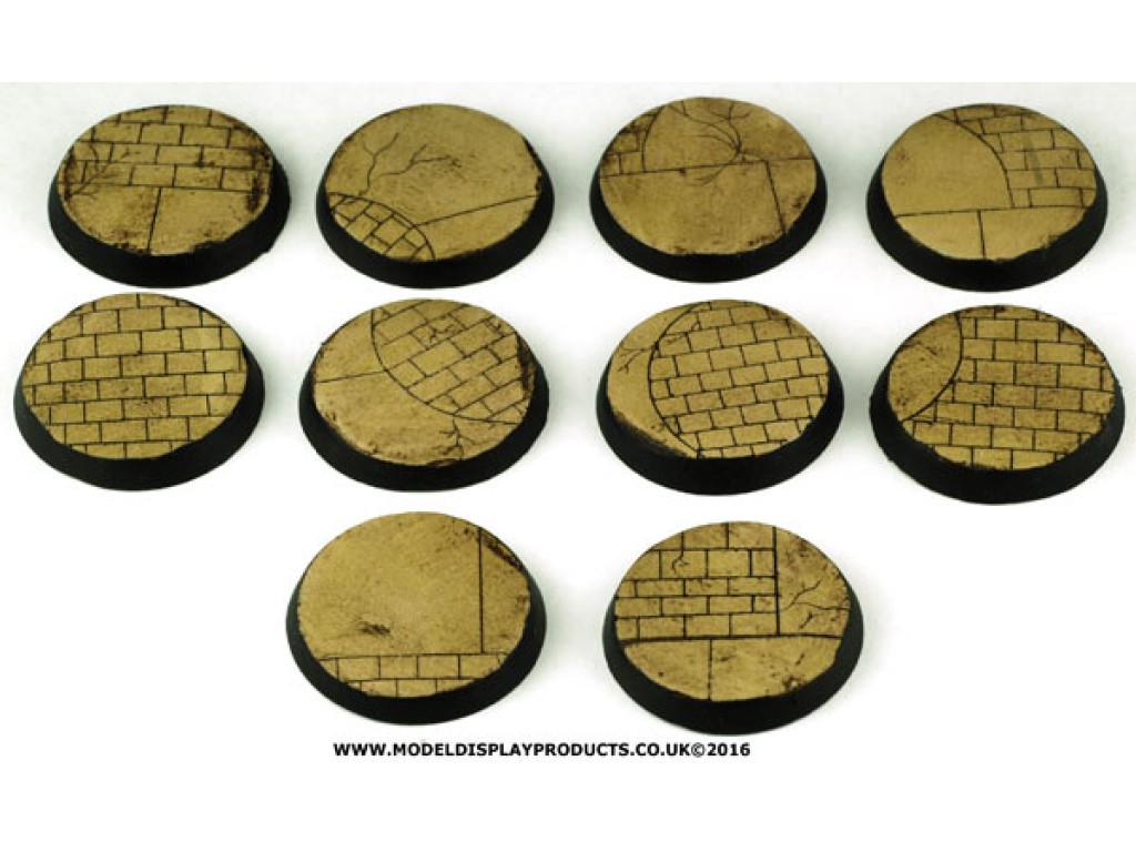 A set of 10, 25mm round Sci-fi bases with a regal stone theme for popular skirmish/war games on the ..