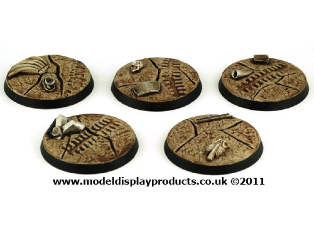 A set of 5, 40mm round Sci-fi bases with a cracked earth theme for popular skirmish/war games on the market.