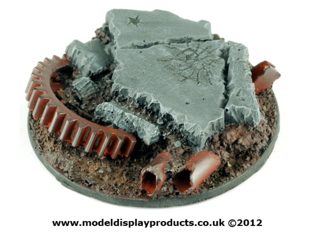 A single 60mm round Sci-fi bases with an industrial rubble theme for popular skirmish/war games on the market.