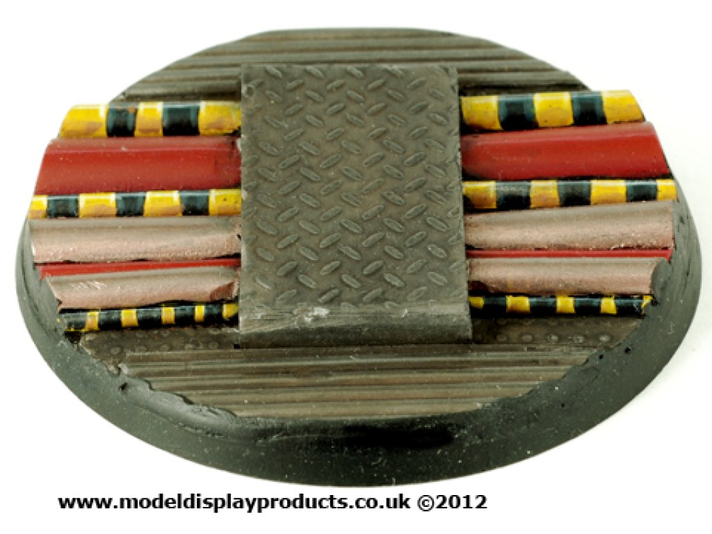 A single 60mm round Sci-fi bases with a tech/starship deck theme for popular skirmish/war games on the market.