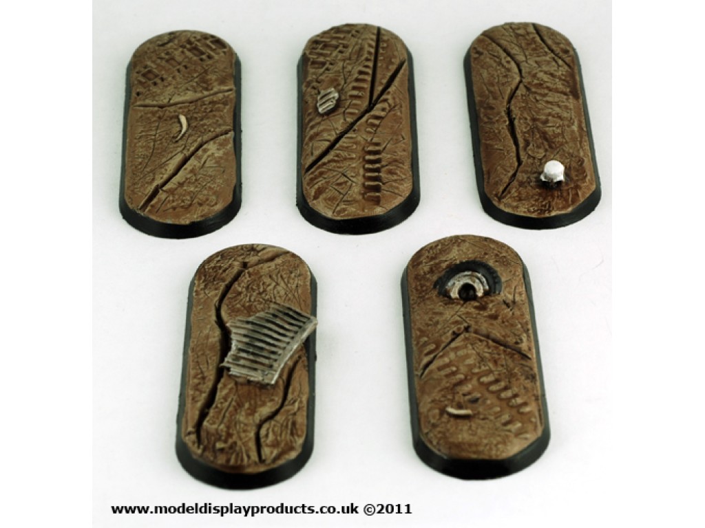 A set of 5, 72mm x 25mm Sci-fi bike bases with a Cracked Earth terrain theme for popular skirmish/war games on the market.
