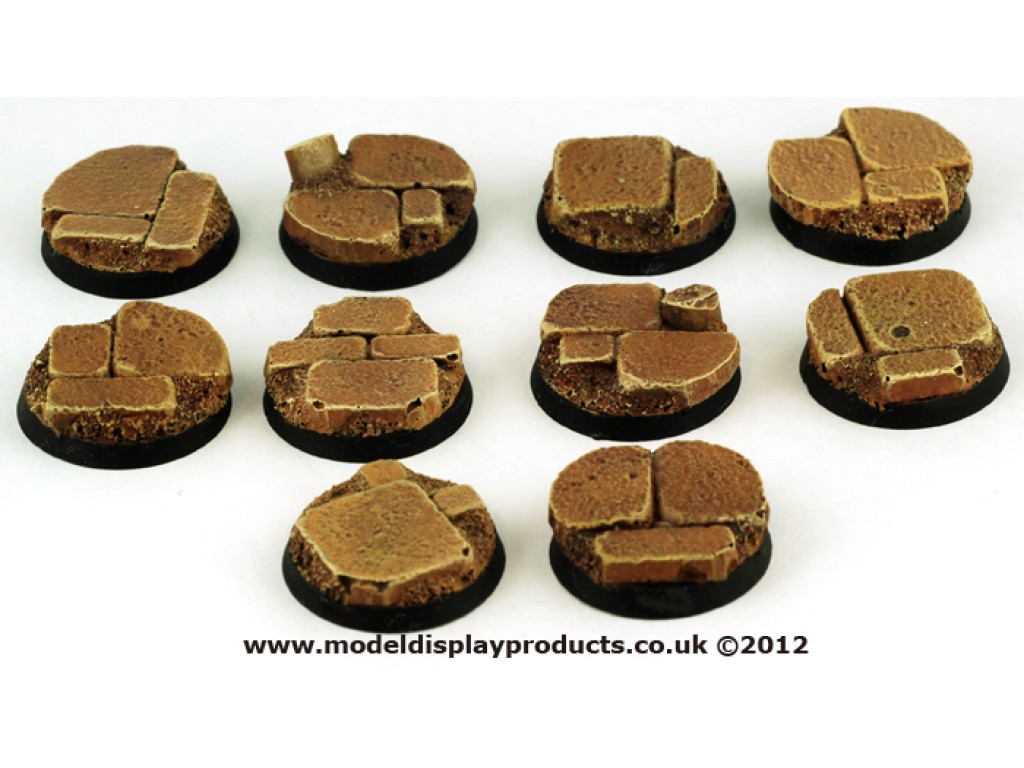 A set of 10, 25mm round Sci-fi bases with a Stone Chapel Ruins theme for popular skirmish/war games on the market.