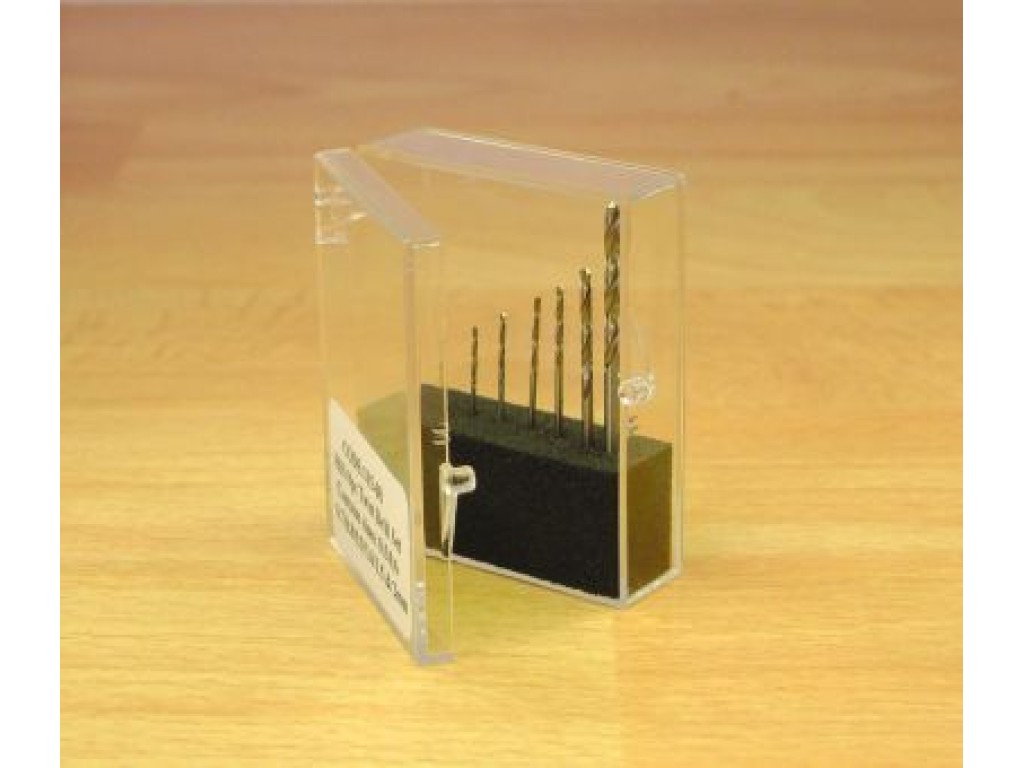A 10pc HSS Twist Drill Set with a 2.3mm Shank.Contains sizes: 0.6-1.5mm..