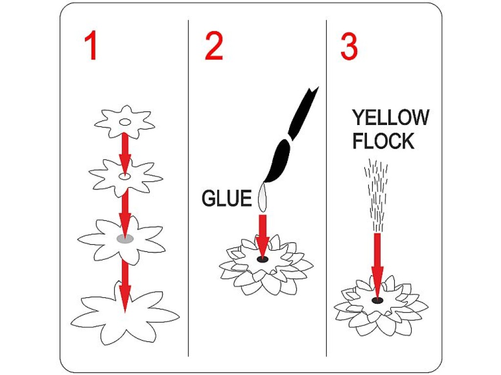 Contains 2 sheets of leaves + 1 sheet of flowers + yellow flock for middle of flower.